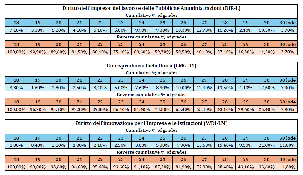 Timetables are available in the Didattica – Orario delle lezioni section on the Department of Law website. They are divided by degree program: